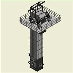 由于水泥企業(yè)規(guī)模的不斷擴大和節(jié)能減排的要求,在國內外采用輥壓機用于生料終粉磨和水泥聯合粉磨也越來越多,其單臺的能力也不斷擴大,使得與之相配套的輸送設備-單臺提升機的能力也在提高。由于此處的物料是塊狀的且磨琢性很大,因此只有板鏈提升機能夠適用。但由于輥壓機出輥物料不穩(wěn)定及磨琢性大等特性及生產工藝問題,經常造成提升機堵料、漏料、設備振動、電機頻繁跳停、物料回料量大等現象,嚴重的影響了整個系統的運轉率。我公司集多年板鏈提升機設計和制造經驗,開發(fā)出了適用于此工藝系統的大輸送量的大型板鏈斗式提升機,使得整個工藝系統不因板鏈斗式提升機的故障而影響整個系統的運轉率。
